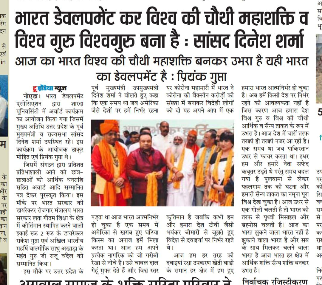 शारदा विश्वविद्यालय, गौतमबुद्ध नगर के उप कुलाधिपति श्री वीoकेo गुप्ता जी